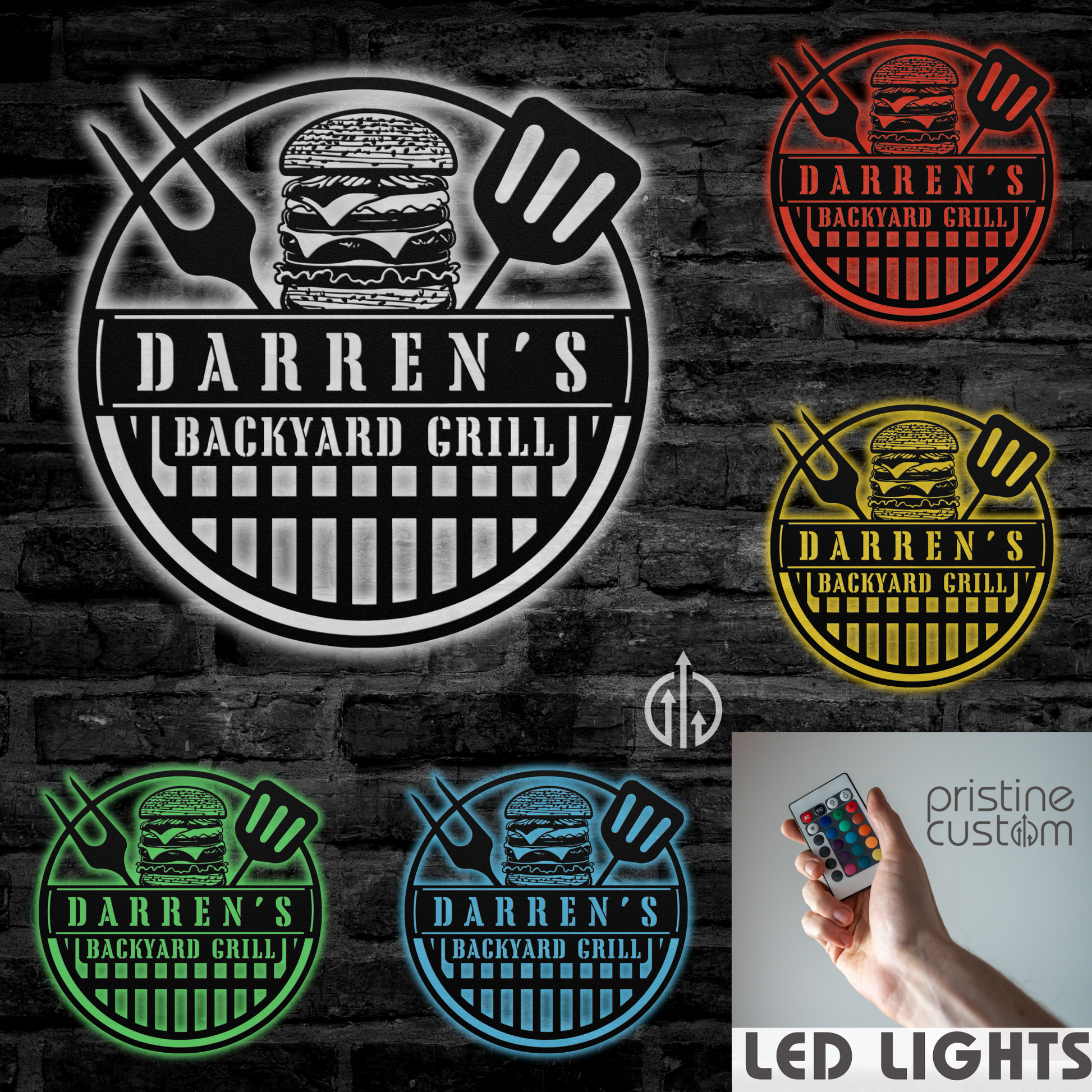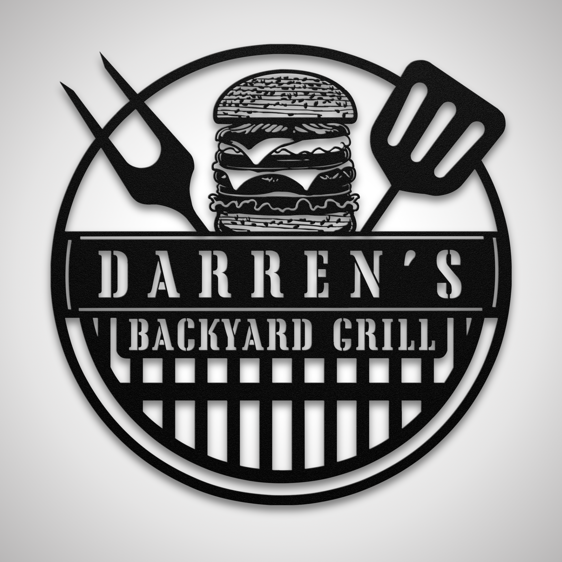Bring your outdoor space to life with this personalized backyard BBQ metal sign, perfect for the grill master in your life. Featuring a classic burger and BBQ tools design, this custom metal wall art adds a unique touch to any outdoor kitchen or patio. Crafted with durability in mind, it's an ideal gift for Father's Day, birthdays, or any occasion that celebrates the love of grilling. Customize with your own name to make it truly special.