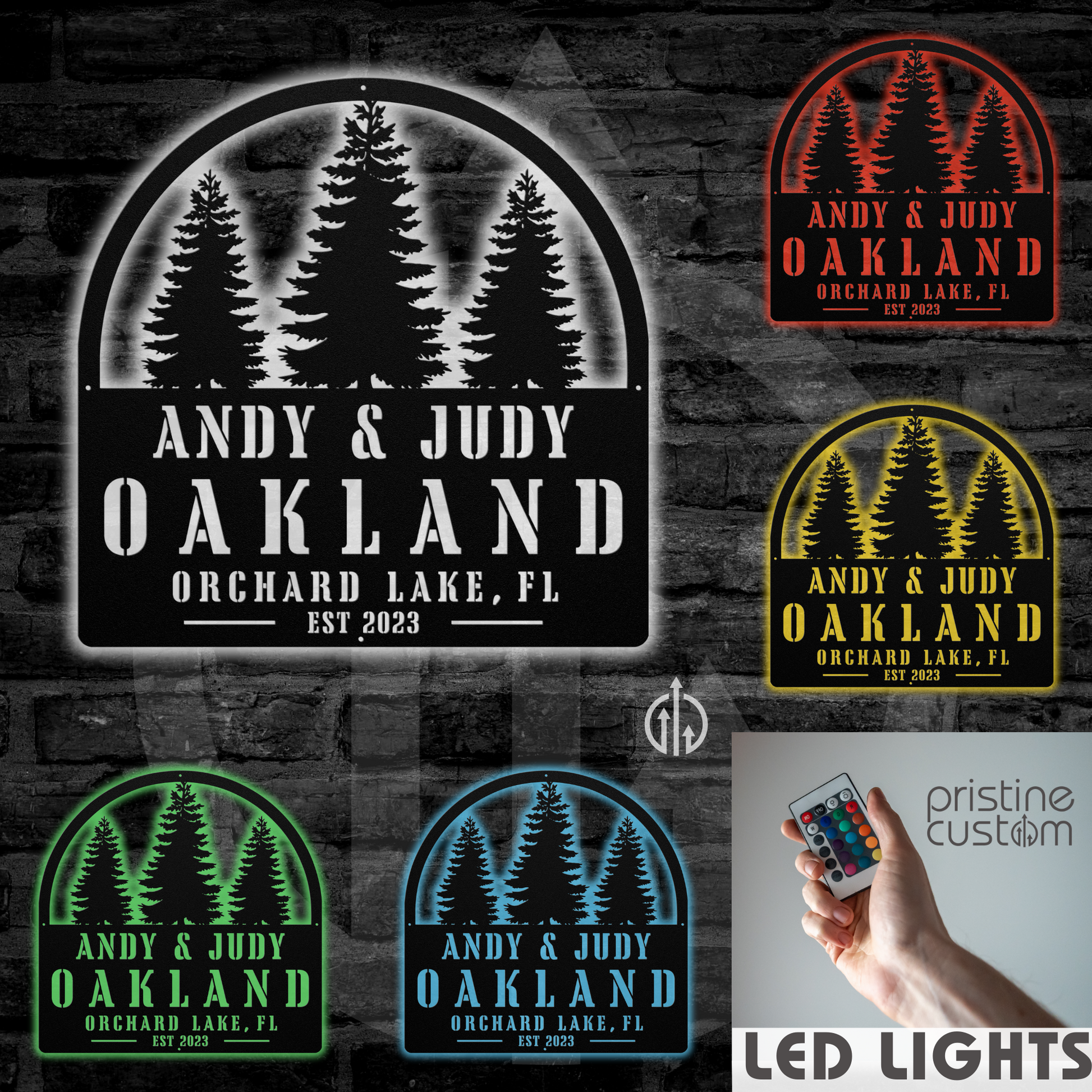 Nestle into cabin life with our Three Trees Half Circle Sign, a custom metal piece that celebrates your family's love for the outdoors. Perfect for any cabin or lake house in Orchard Lake, FL, or beyond, and customizable with your names and established date.
